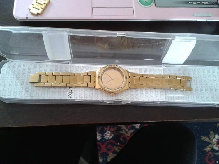 Vendo reloj swatch dorado de dama en su caja y su garantia.