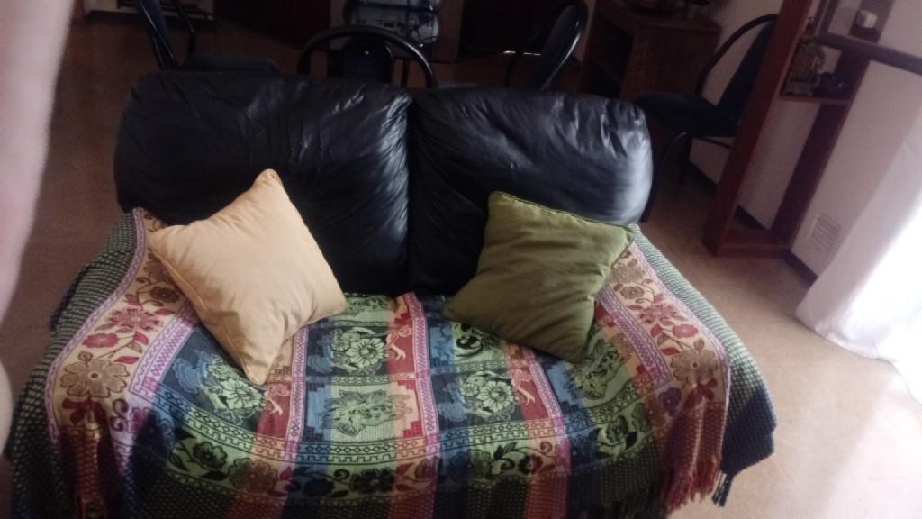 Sillon eco cuero negro dos cuerpos de regalo va manta y almohadones