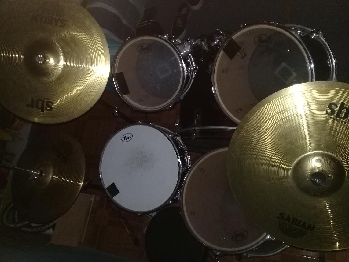 Bateria pearl 5 cuepos con fierros y platillos sabian 14,16,20.