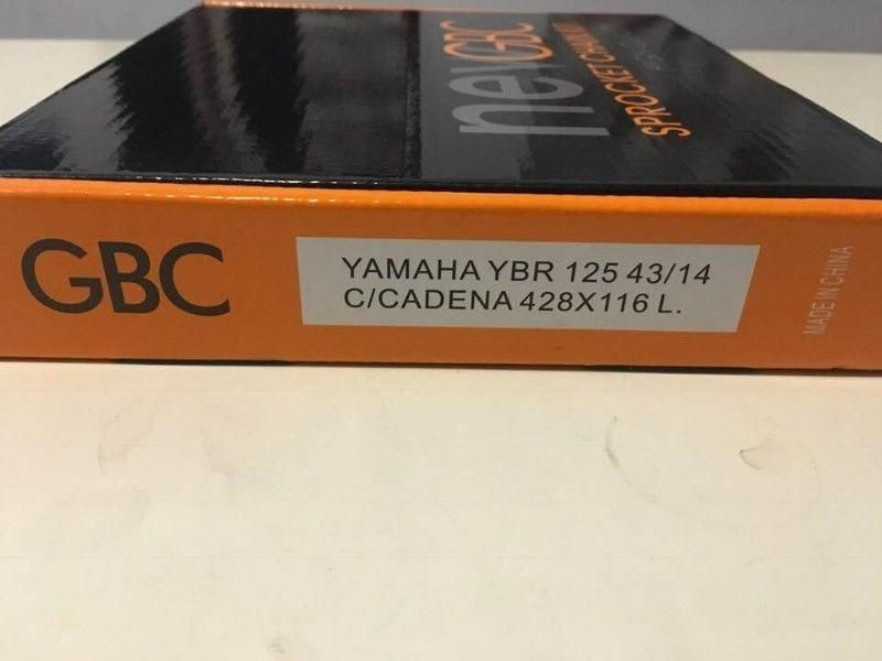 YAMAHA , YAMAHA YBR125 , KIT COMPLETO YAMAHA YBR125 CADENA CORONA Y PIÑON , YAMAHA YBR125 KIT COMPLETO CADENA 428 X 116L CORONA Z43 PIÑON Z-14
