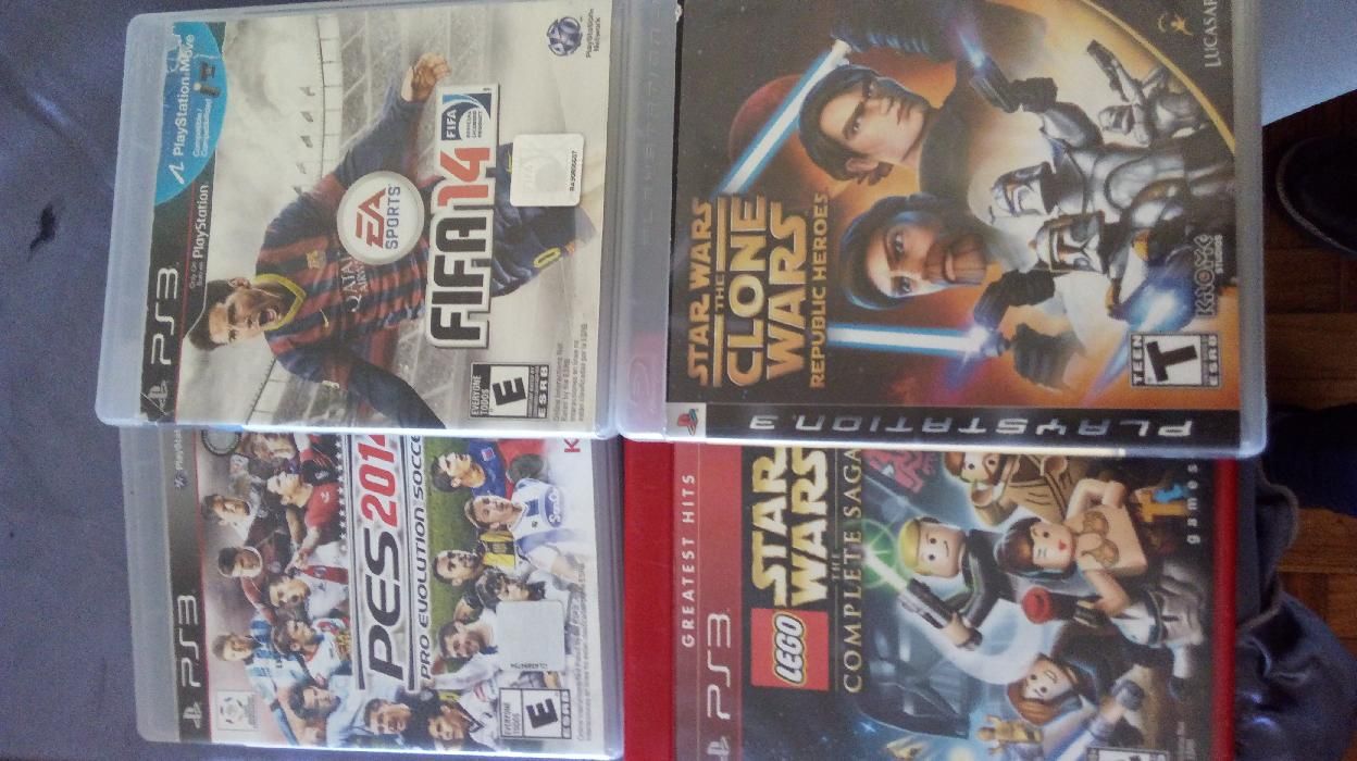 Pes14 y fifa 2014 ambos 250 y los star wars c/u400 todos en excelentes condiciones para ps3 o cambio por guitar hero y mortal combat. Ps3