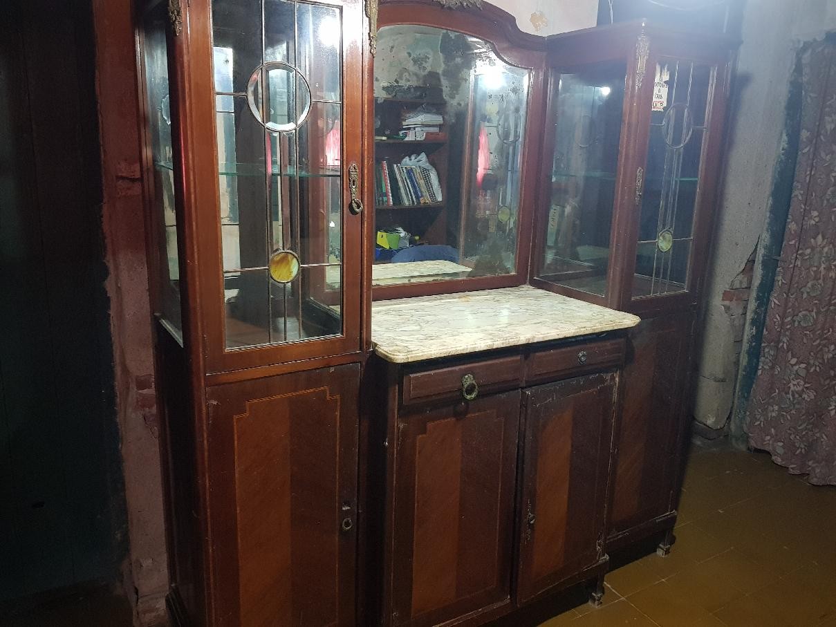 Vitrina antigua con espejos y mármol con apliques en bronce