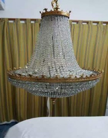 Lámpara Imperial de Bronce y cristal de roca tornasolado de 7 luces.