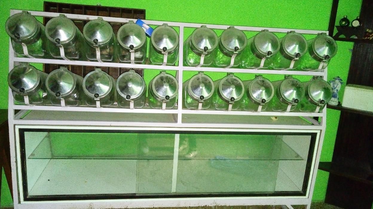 Caramelera antigua en excelente estado df o con más de 50 años de antigüedad, posee 20 frascos y mueble vitrina inferior