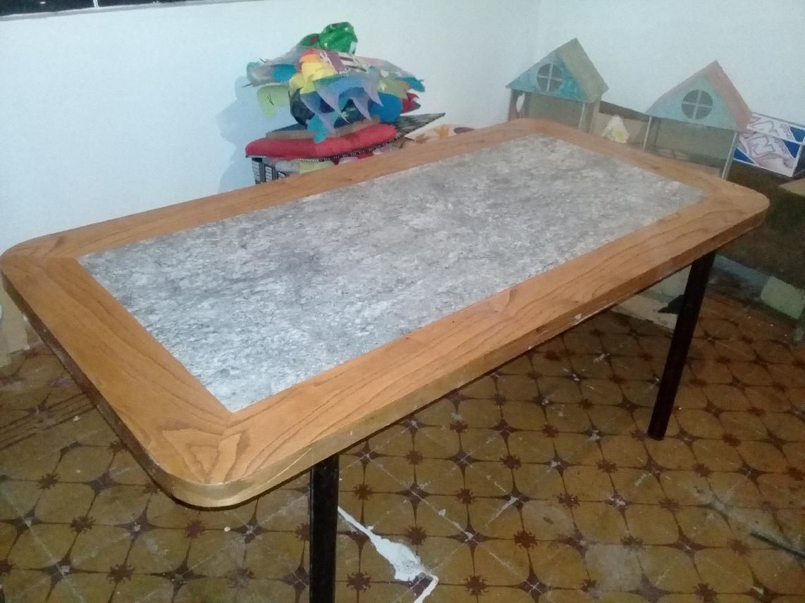 vendo mesa(tamaño familiar) aglomerada y enchapada rectangular en muy buenas condicciones.