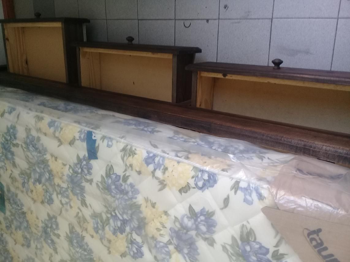 Cama2pz cajonera y colchón Taurus silver con resorte.biblioteca guatambu. Mesa vidrio con leve prolongación y 4sillas guatambu tapizado eco cuero .LED noblex 32