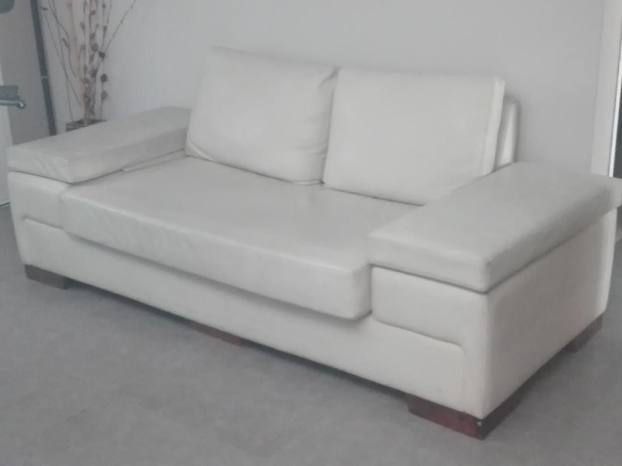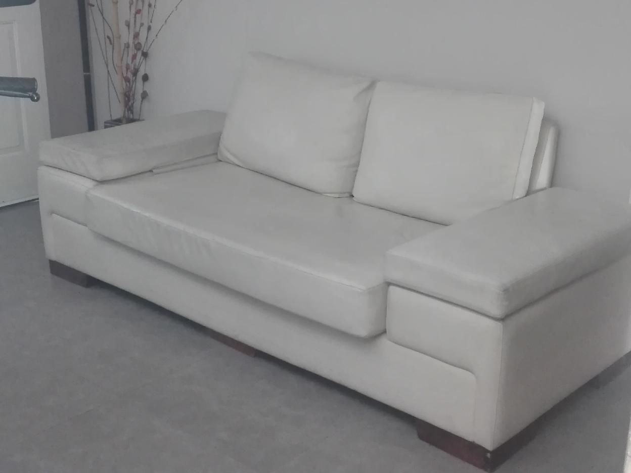 Sillón dos cuerpos de ecocuero color natural. Muy confortable, buen estado. 2.06 largo, 0.96 de profundidad y 0.70 de alto.