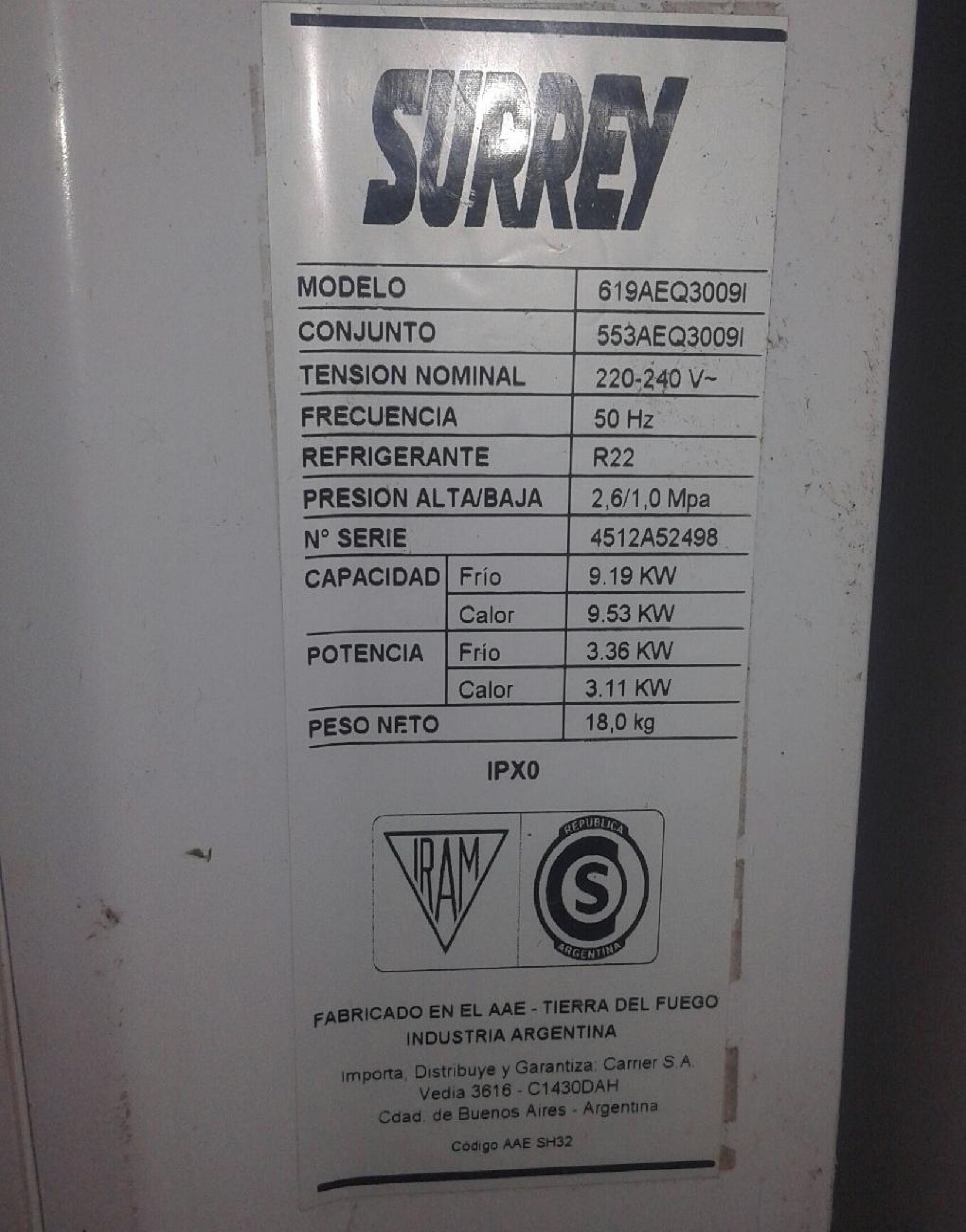 SURREY FRIO CALOR 7900 FG