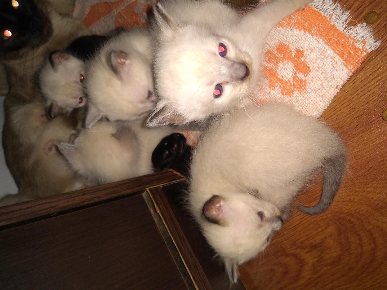 Gatitos siameses nacidos el 25 de noviembre. Padres a la vista.