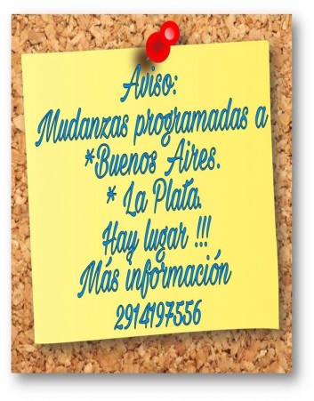 1ra QUINCENA DE FEBRERO VAMOS A BUENOS AIRES /LA PLATA ; 2da QUINCENA DE FEBRERO VAMOS A NEUQUEN E INTERMEDIAS, REGINA, GRAL.ROCA, CIPOLLETTI Y PLOTTIER .LUGAR DISPONIBLE PARA LLEVAR O TRAER. CONSULTANOS !!!!