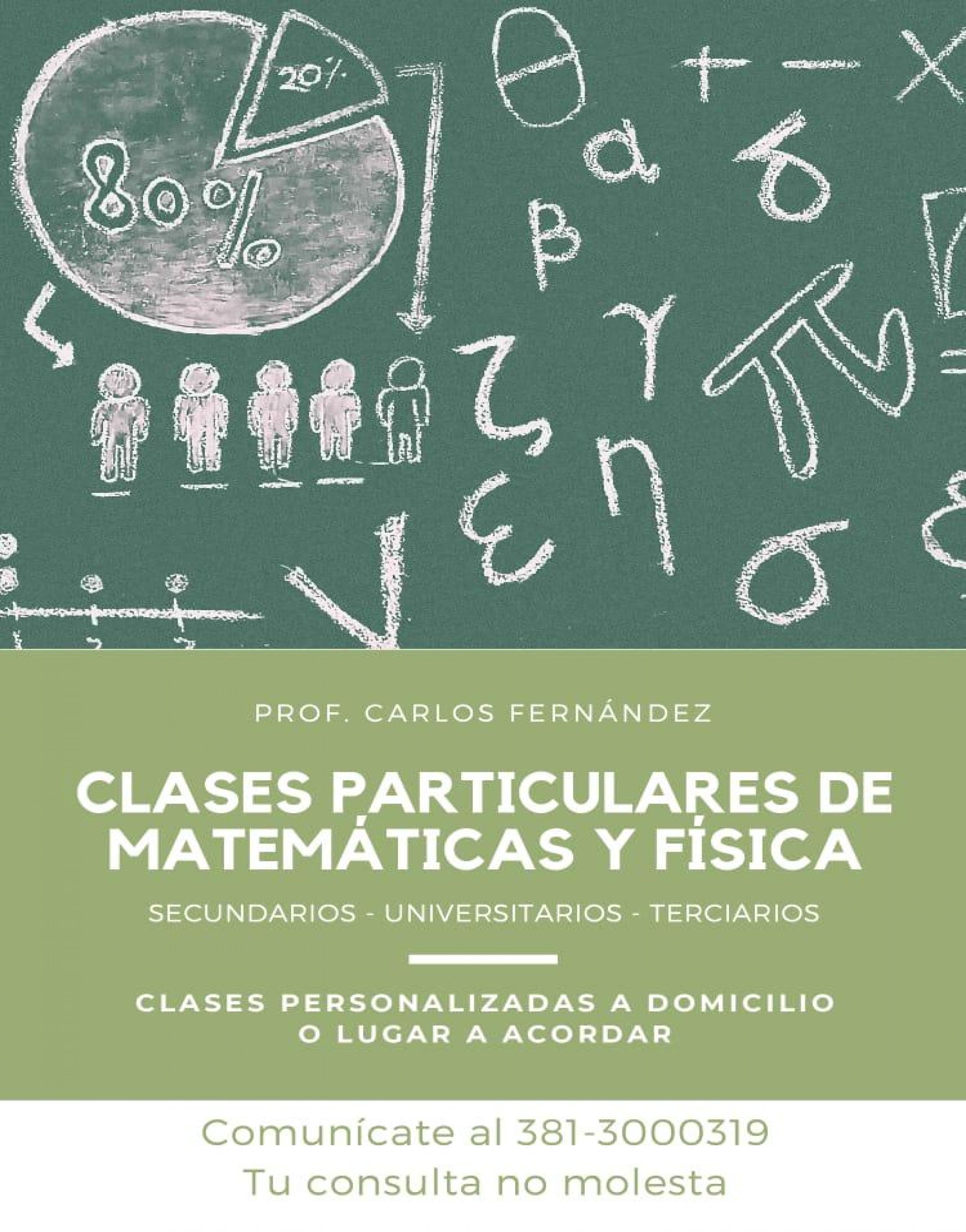 Clases de matemáticas y física a domicilio personalizadas, nivel secundario, terciario y universitario. Profesor Carlos Fernandez consulta al cel:381-3000319