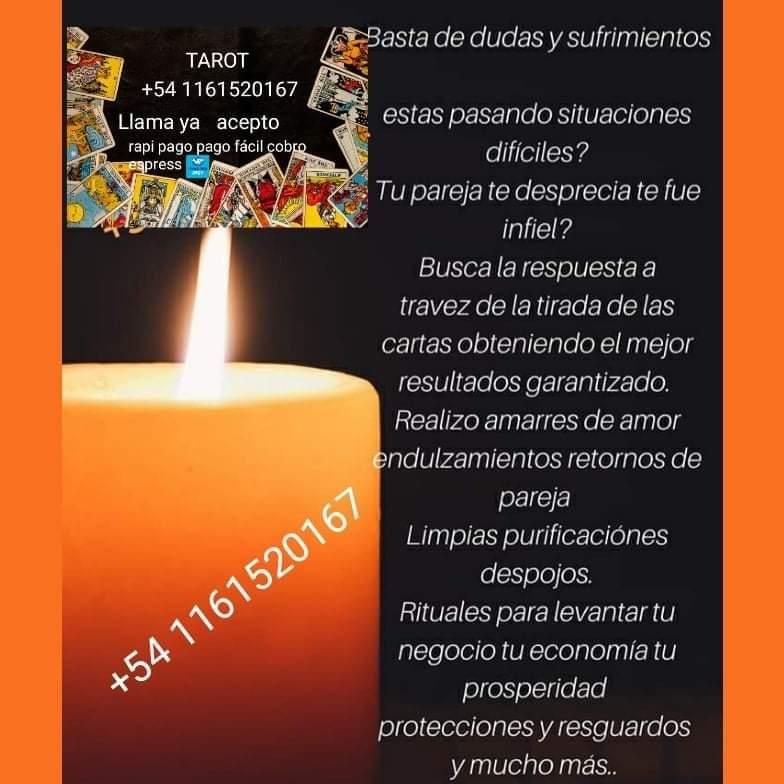 Veni a verme no Te arrepentirás, no digas nada, yo te dire pasado, presente, futuro. ¿ te sigue la mala suerte y los fracasos en los negocios? Le ayudo a resolver sus problemas por mas Dificiles que sean, por cada pregunta tengo una respuesta, y para cada problema, una solucion! Hago todo tipo de trabajos, se hacen uniones de pareja, le regreso al ser amado por mas alejado o dominado que este, ENDULZAMIENTOS EL AMOR Y LA BUENA SUERTE Limpiezas liberaciones destrabes ,cortese de males ,daños,enemigos y brujeríasProtección contra la envidia y la mala suerte ,uniones de amor,atraer dinero,uniones familiares. Consultarme ahora ,no pierdas más tiempoAcepto mercado pago ,pago fácil, wester union,transferencia bancaria .