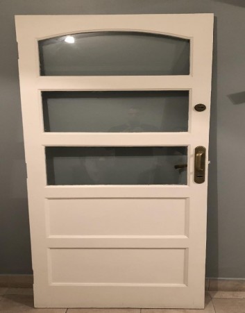 Puerta madera maciza con vidrio. Interior. Sin marco de Color blanca En muy Buen estado con cerradura