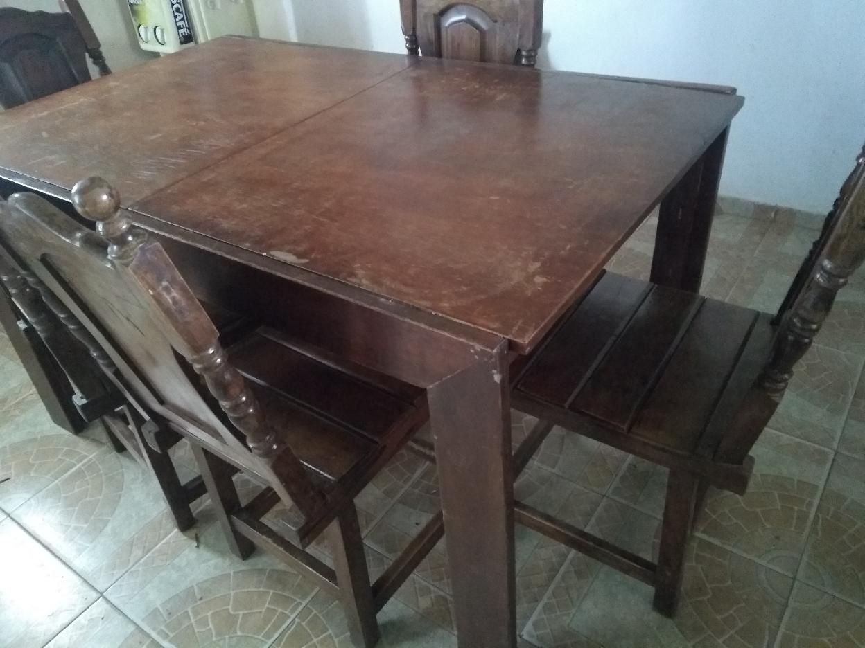 Juego de comedor con 5 sillas de algarrobo y mesa de cedro.