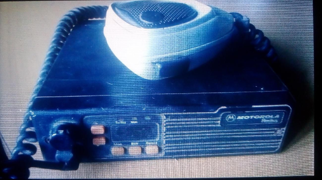 Radio base Motorola VHF 4 canales con antena larga.
