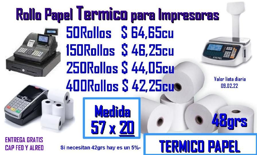 ROLLOS DE PAPEL PARA IMPRIMIR PRODUCCION DIRECTA TERMICOS OBRAS QUIMICO DUPLICADO (OBRA *QUIMICO)CORTAMOS TODAS MEDIDASCINTAS PARA EMBALAJE 48X100 Y 48X50 (TRANSAPRENTES Y MARRON CONSULTE IMPRESOS )ROLLO DE ETIQUETAS PARA COMANDERSAS,IMPRESORAS Y FISCALES,CALCULADORAS,BALANZAS,POSNET ETCWhatsapp: 011 15-4980-8701 / 15-6001-6117