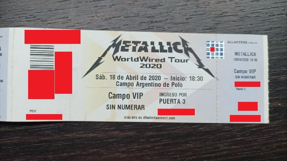 entradas para Metallica campo VIP 30 de Abril 2022