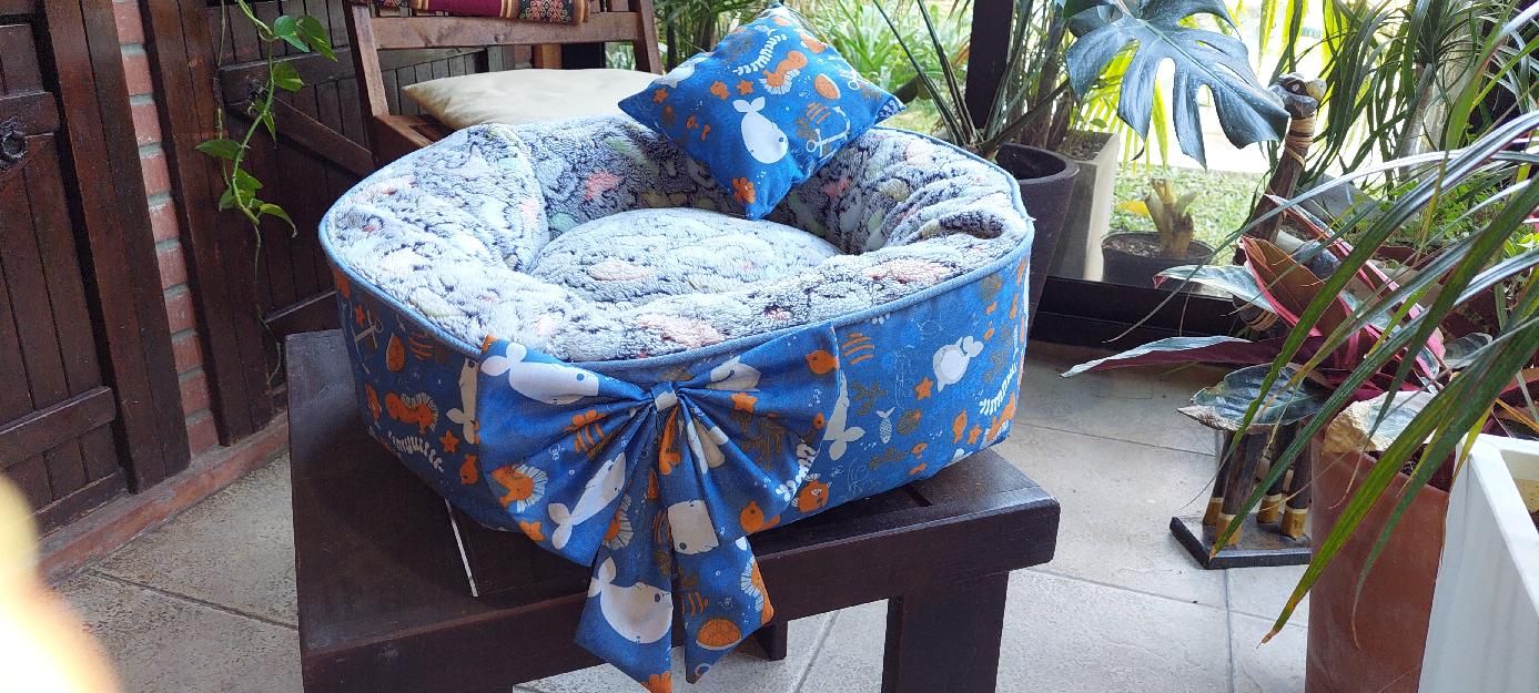 Camita para tu mascota.Tamaño: pequeñaMedida: 50 cm. De diámetro.Lavable. Con Cierres para sacar los almohadones.