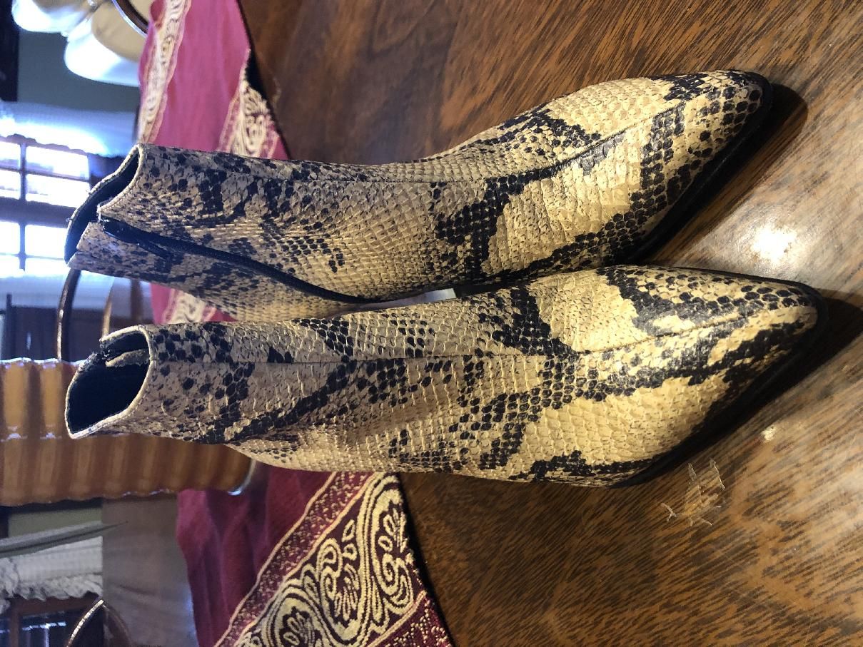 Botas de cuero serpiente beige y negro , taco acrílico un solo uso . Talle 37