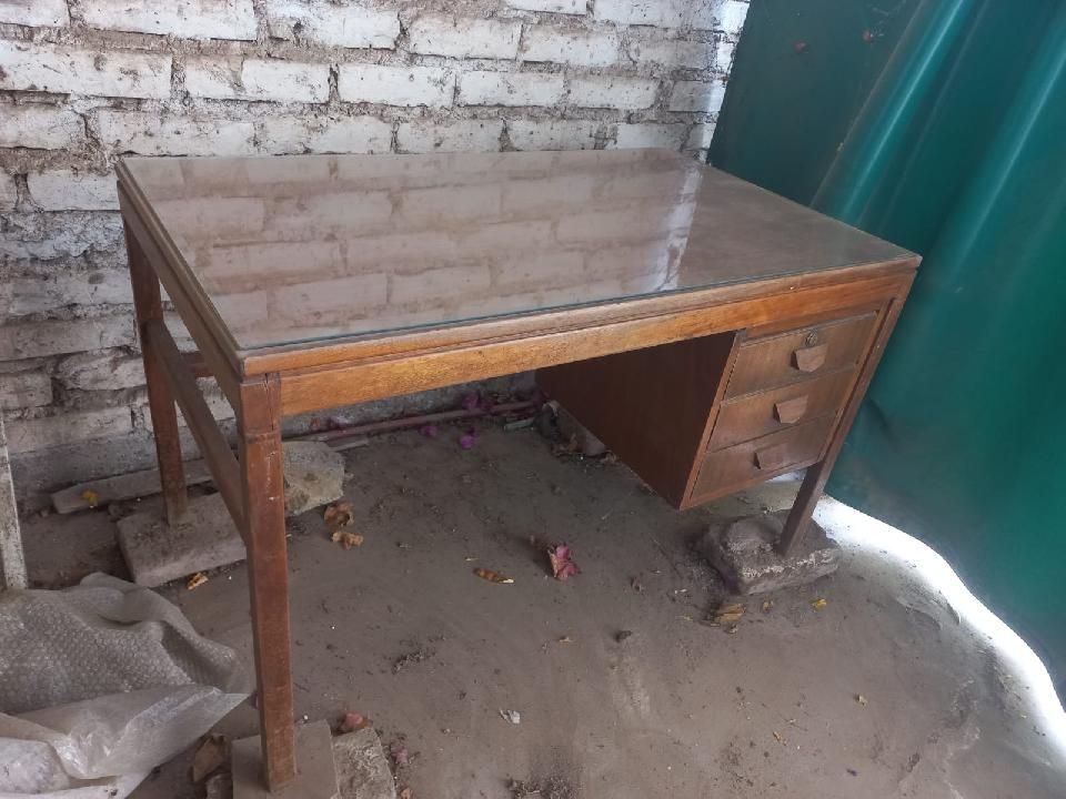 Escritorio de oficina madera ,amplio, 3 cajones con llave, y vidrio de apoyo.