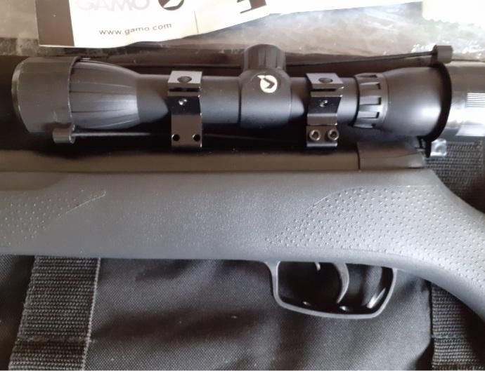 Liquido ya rifle aire comprimido 5.5mm con mira telescópica, funda ,caja completa de balines y manuales ( nuevo)