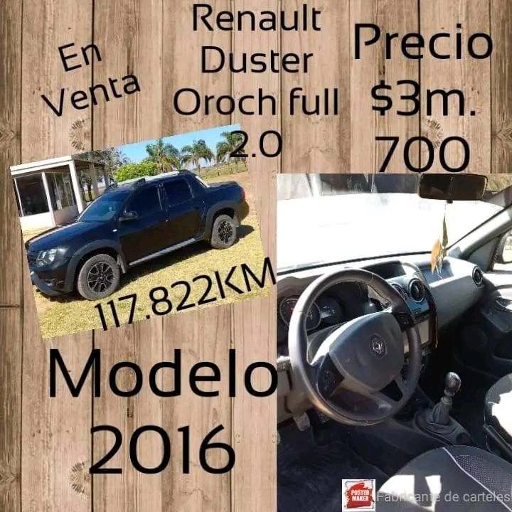 Vendo hermosa camioneta Duster oroch full.2.0. impecable. Con 117.822km. carpeta completa papeles completos no permuto solo vendo