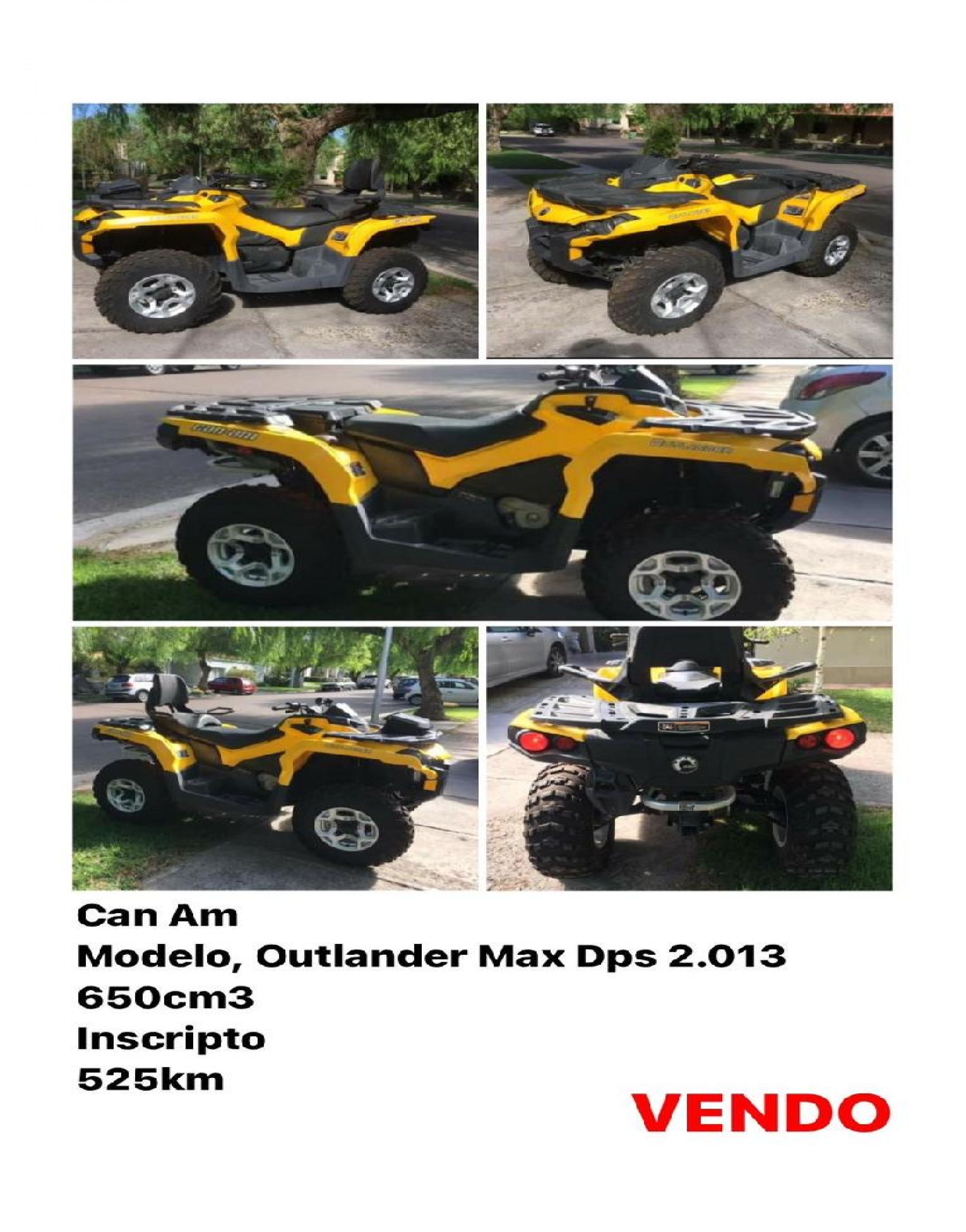 Vendo cuatriciclo Can Am Outlander Modelo 2013 600 km Poco uso