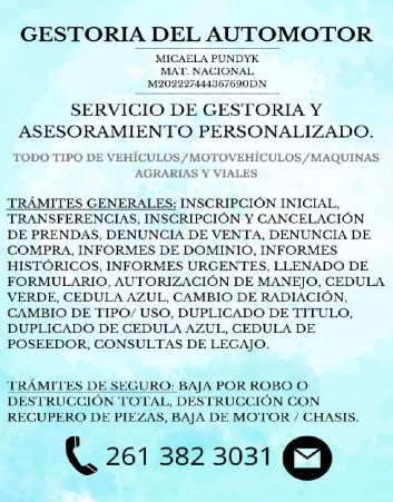 TRÁMITES GENERALES: INSCRIPCIÓN INICIAL, TRANSFERENCIAS, INSCRIPCIÓN Y CANCELACIÓN DE PRENDAS, DENUNCIA DE VENTA, DENUNCIA DE COMPRA, INFORME DE DOMINIO, LLENADO DE FORMULARIO, AUTORIZACIÓN DE MANEJO, CAMBIO DE RADICACIÓN, CAMBIO DE TIPO/ USO, CEDULA DE POSEEDOR, CONSULTAS DE LEGAJO, BAJA POR ROBO O DESTRUCCIÓN TOTAL, BAJA DE MOTOR/ CHASIS