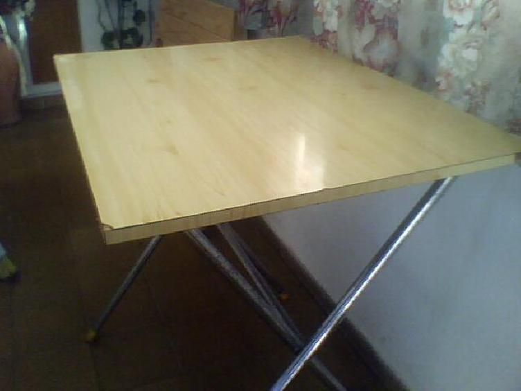 vendo mesita plehable de melamina color marron clara en perfecto estado.medidas 0.75x0.60cm.