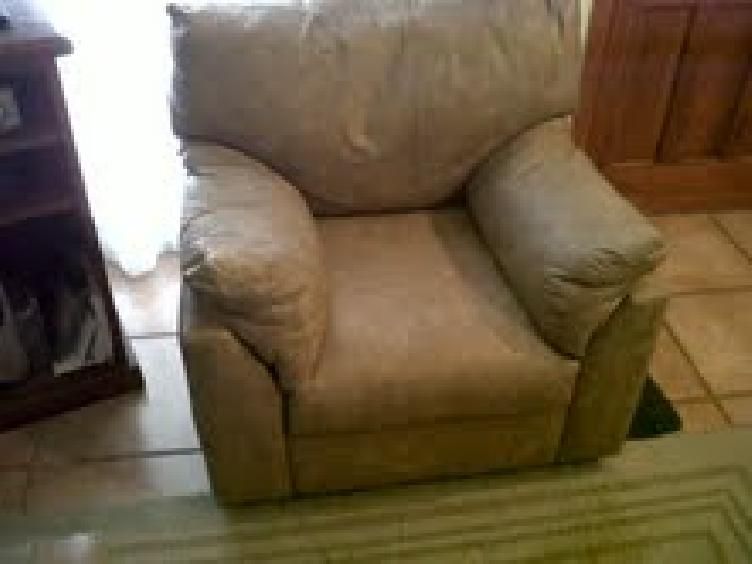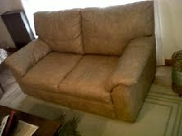 Juego de Sillones en buen estado, (3 sillones, 1 dos cuerpos y 2 individuales). Tapizados en cuerina de color marrón claro.