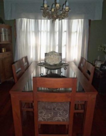 VENDO JUEGO DE COMEDOR.CON MESA 1,80 CON TAPA VIDRIADA, MAS 6 SILLAS TAPIZADAS EN CHENILLE COLOR CHOCOLATE. IMPECABLE!! 1AÑO DE USO