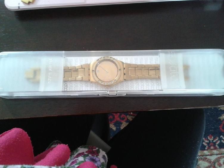 Vendo reloj swatch dorado de dama en su caja y su garantia.