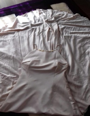 Vestido de fiesta, impecable con tan solo un usó,color champagne,doble tela,con detalles delicados,taza talle 90 incluidas, espalda descubierta,y con una caída muy elegante.