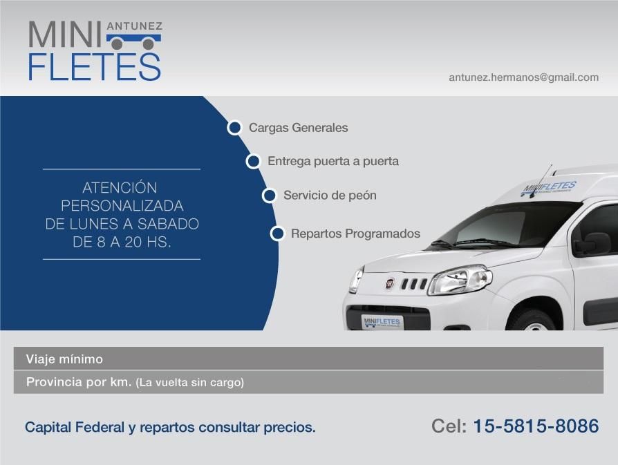 Realizamos transportes de cargas generales, entrega pueta a puerta, servicio de peon, repartos y viajes al intarior programados, contamos con factura \"C\"