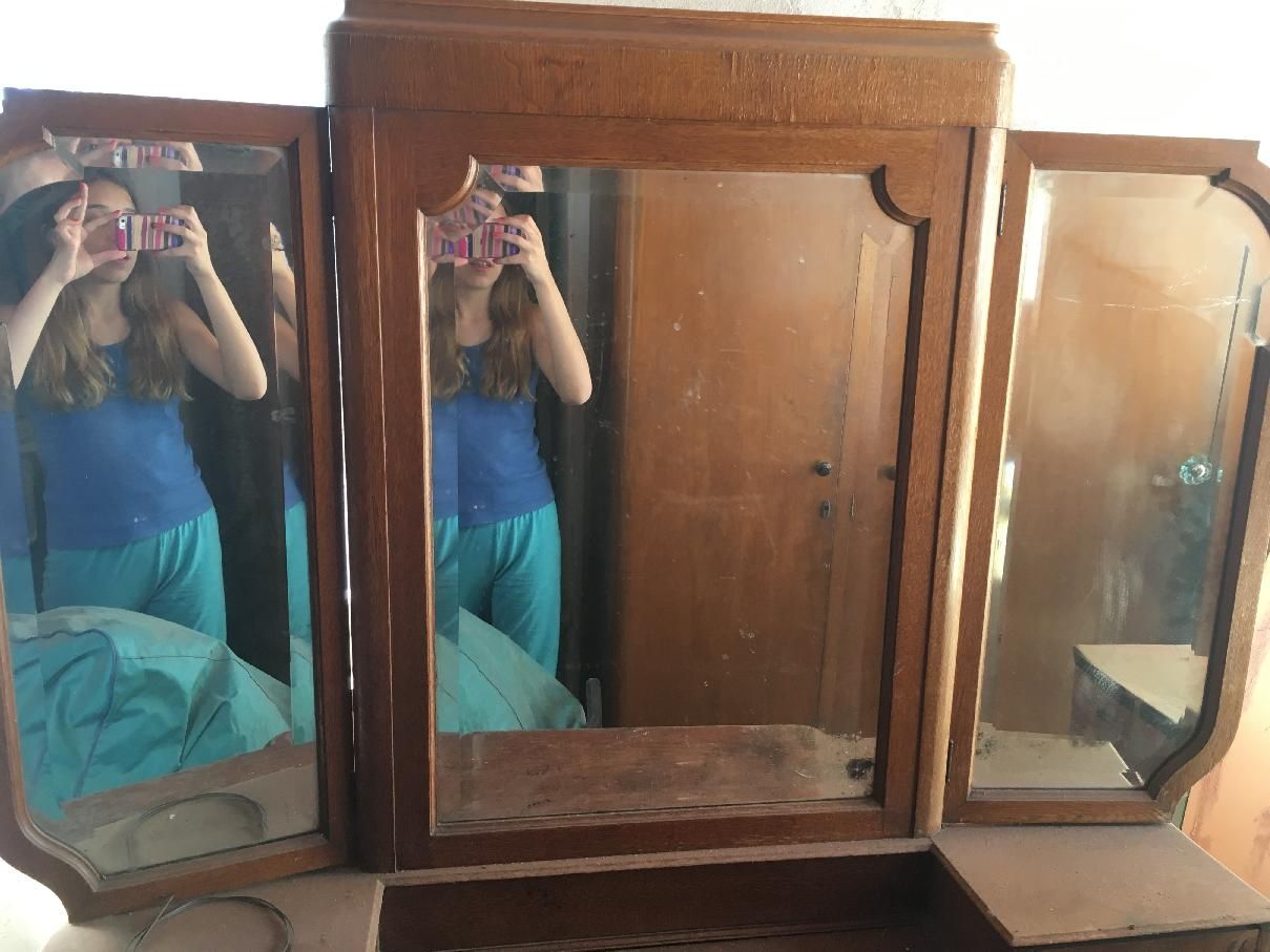 Mueble antiguo con 2 espejos tambien tiene cajones