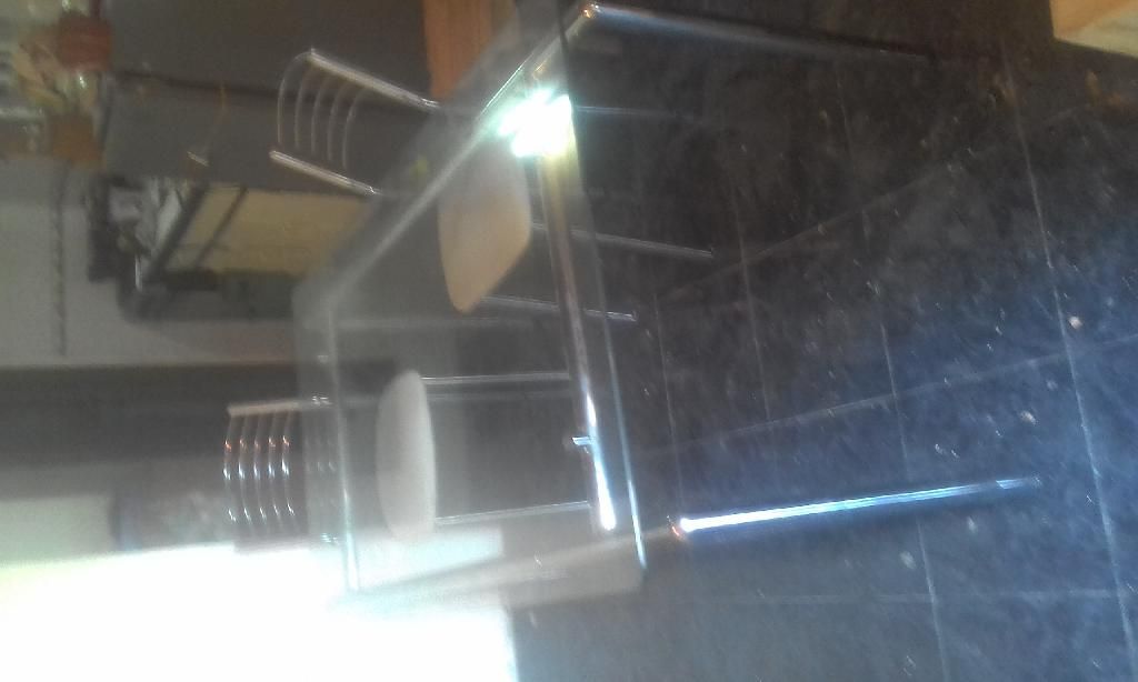 Mesa de vidrio templado con pie cromado y 6 sillas