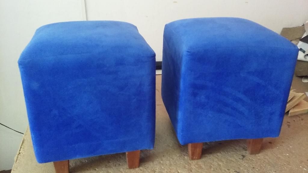 Banquetas 40x40 con patas de madera en pana azul de buena calidad $400