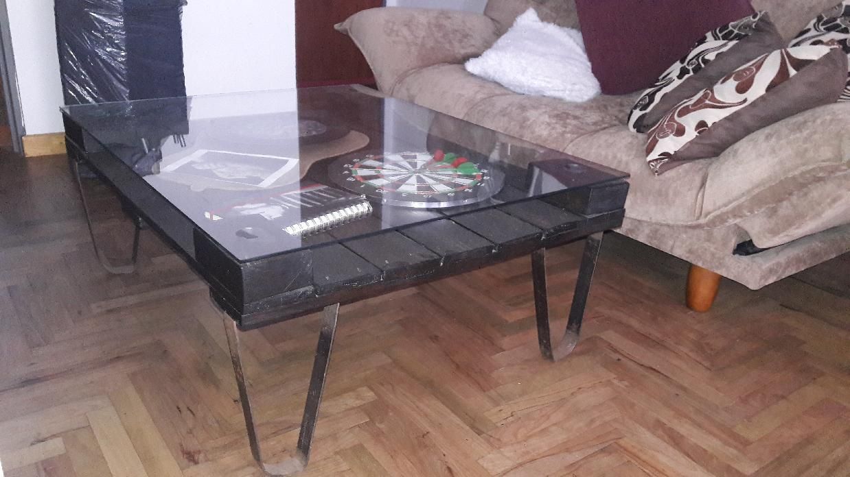 Mesita de madera y vidrio,para sala de tv o living comedor,72 cm ancho,87 cm largo y 37 cm alto