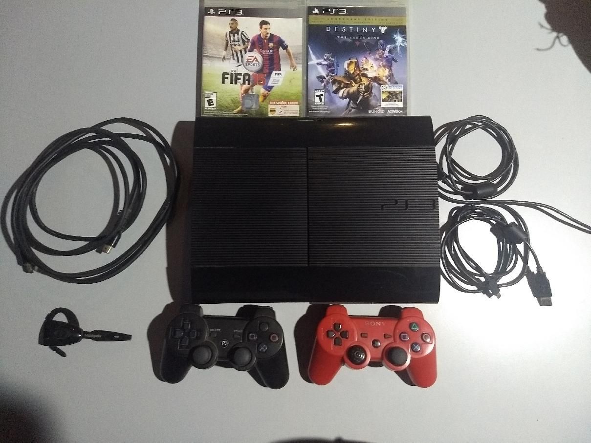 PS3 superslim con accesorios de 500gb dos juegos físicos,más 6 juegos digitales , micrófono y dos joystick.funciona perfectamente