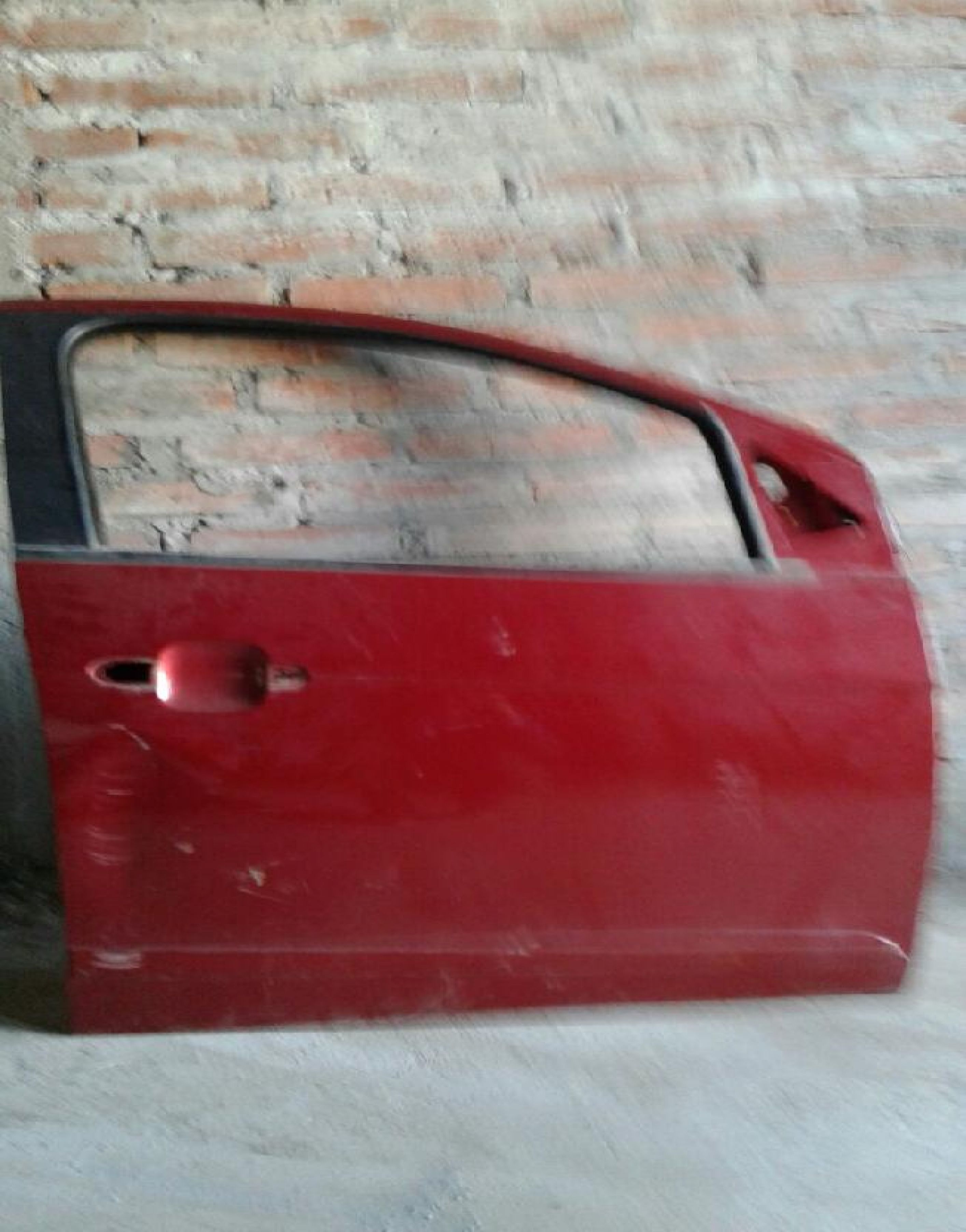 Puerta de Gran Siena color Rojo usada lista para colocar. Detalles visibles