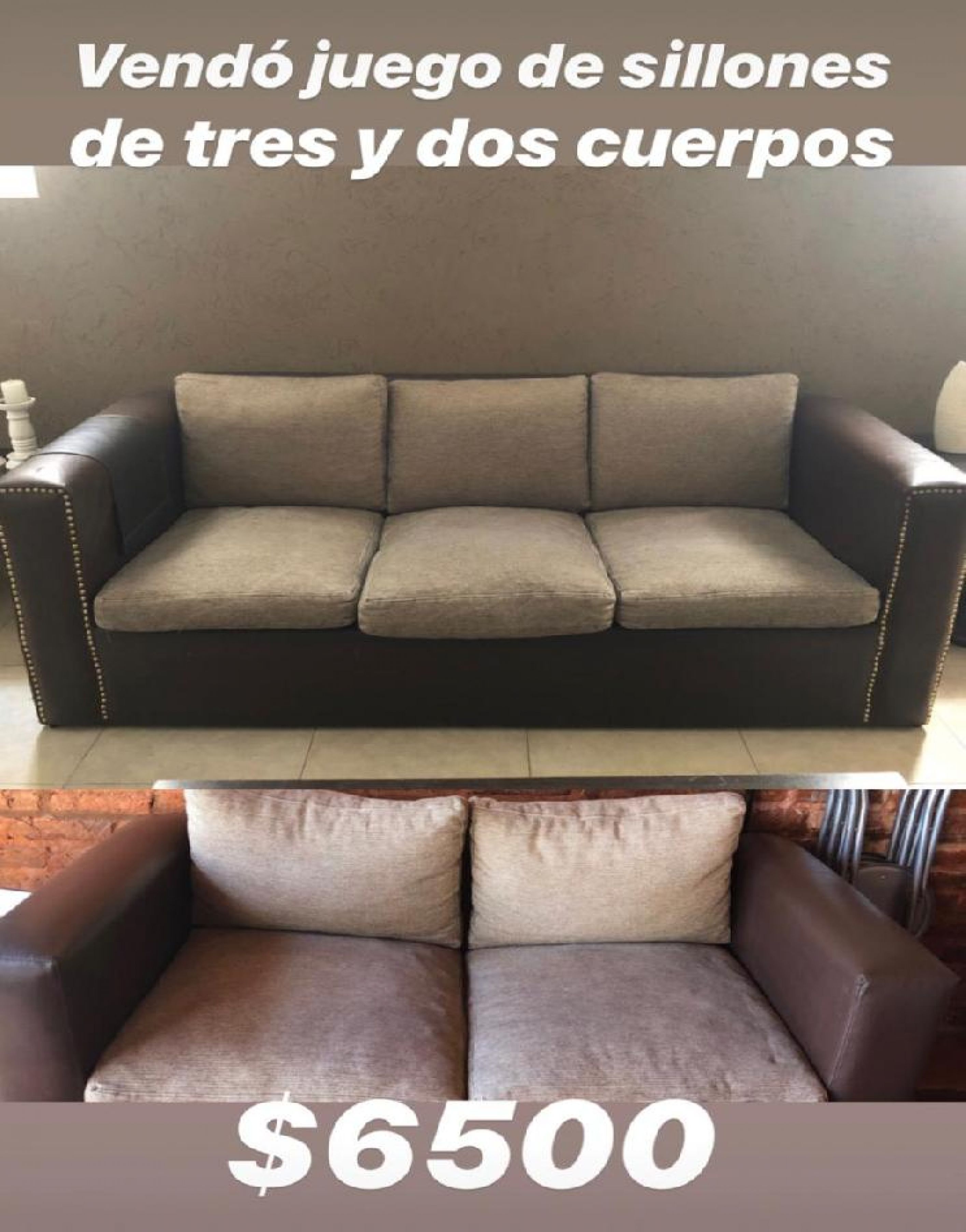 Juego de sillones 2 y 3 cuerpos Ecocuero colormarrón almohadones de tela muy bien estado