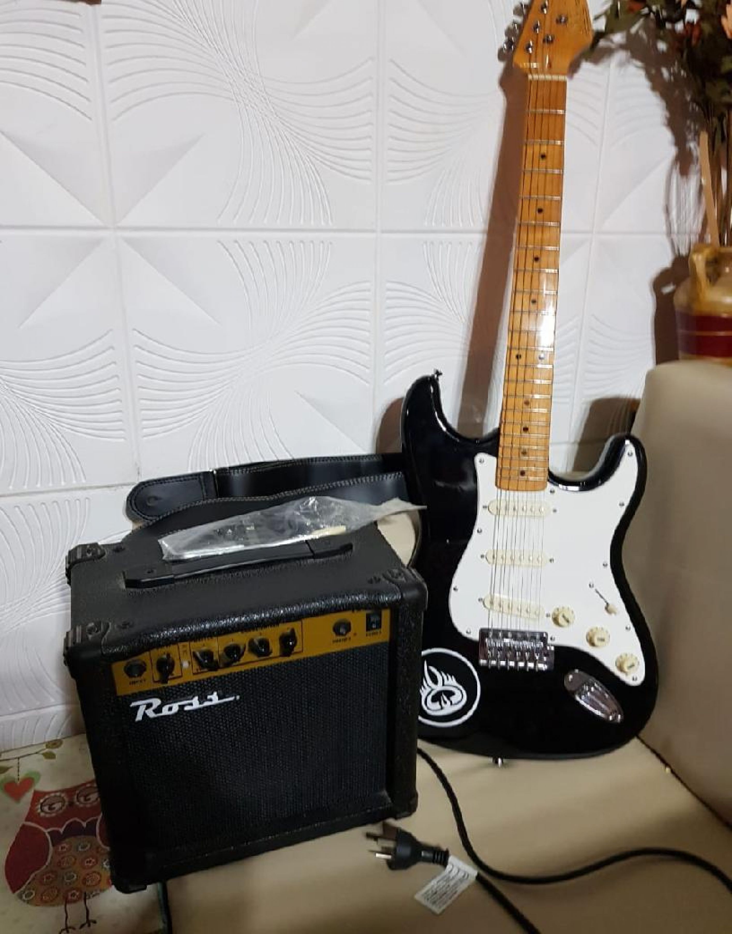 Guitarra electrica SX con correa más amplificador Ross 15 G , estado impecable, casi nada de uso
