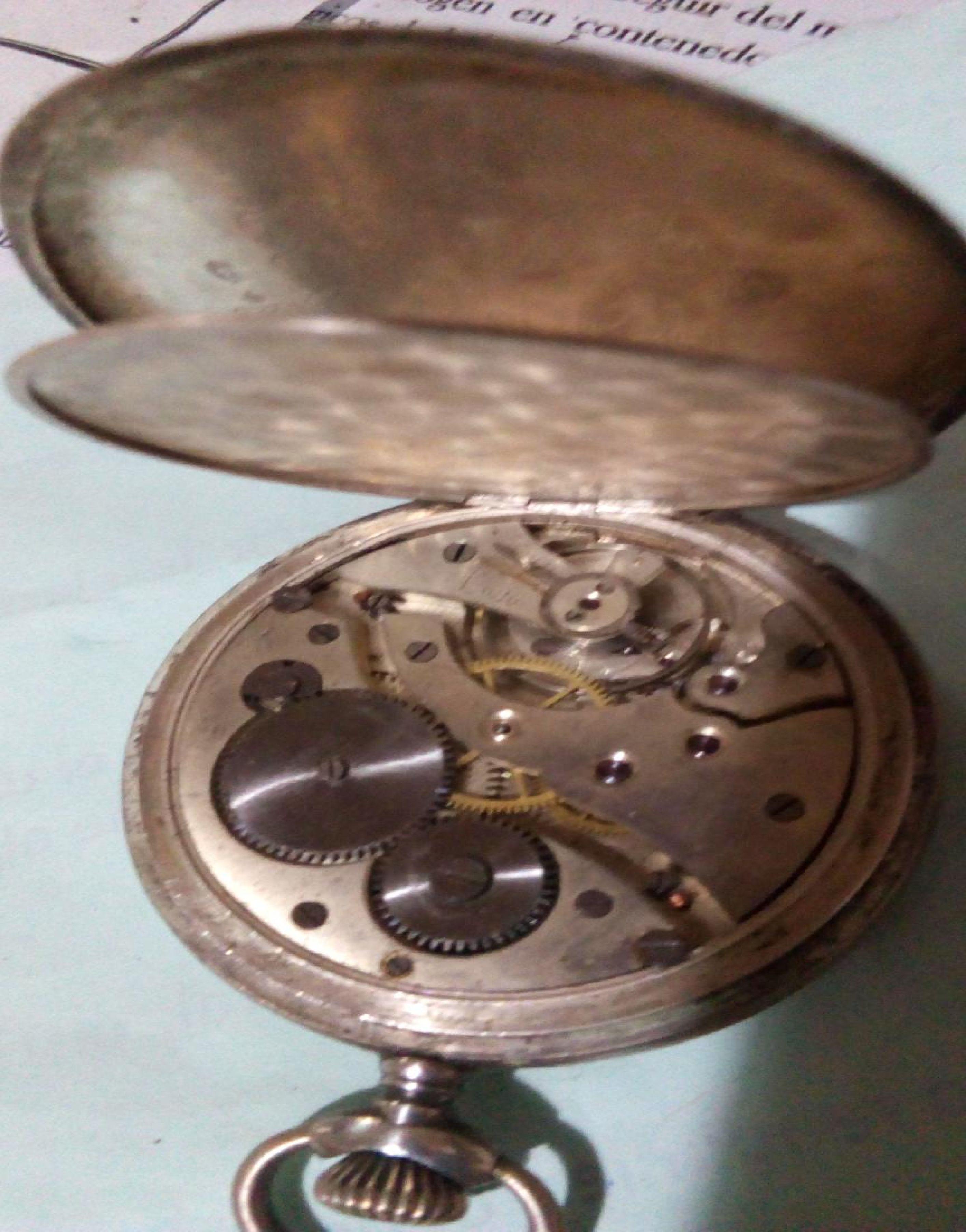 Reloj 3 tapas, plata 900, 15 rubíes, funciona perfectamente.