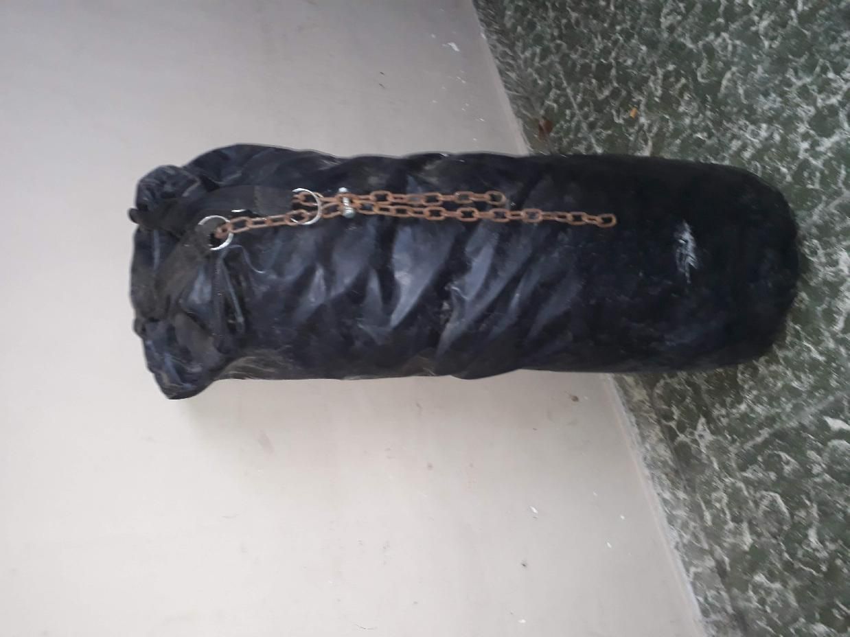 Bolsa de boxeo profesional poco uso con soporte de cadena en cuero super pesada,