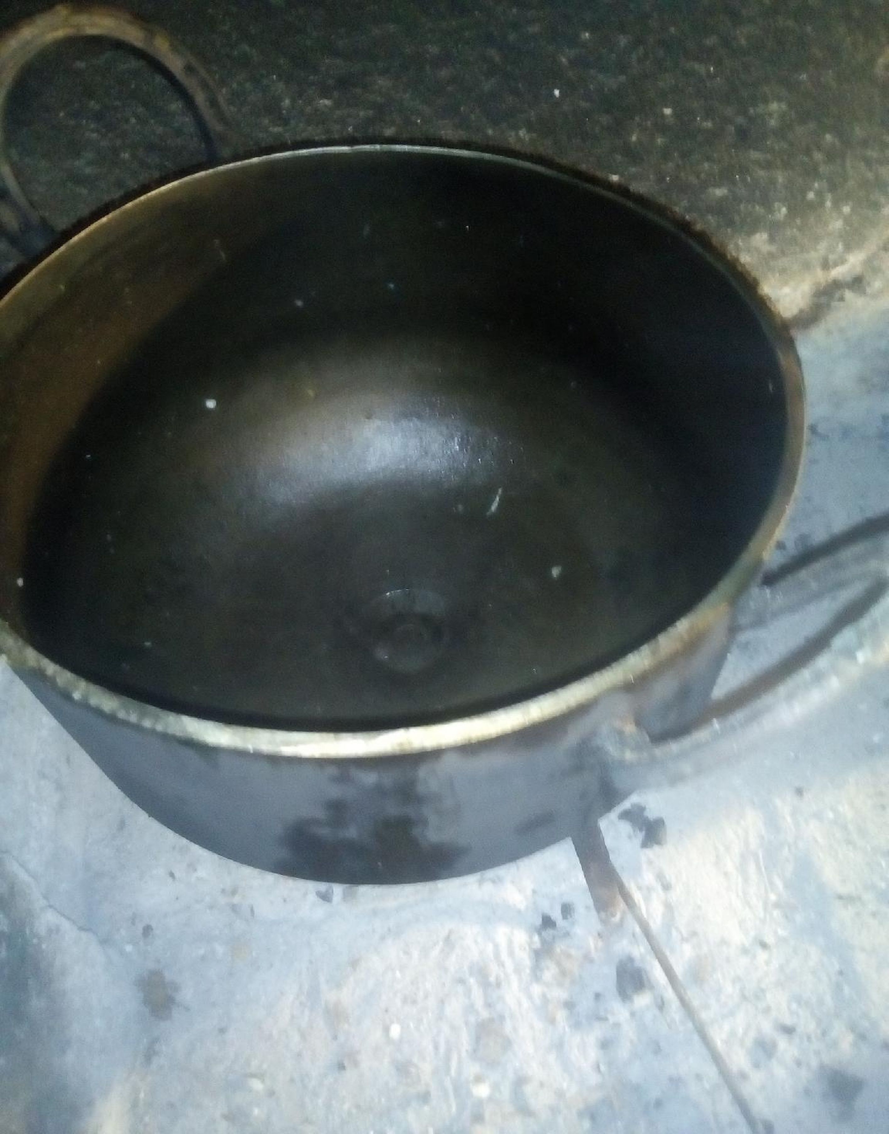 Olla de fierro para cocinar al fuego. Con manijas echas con herraduras