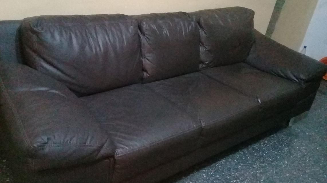 Sillon tres cuerpos en ecocuero marron tiene detalles de uso . El precio de charla. 152007974