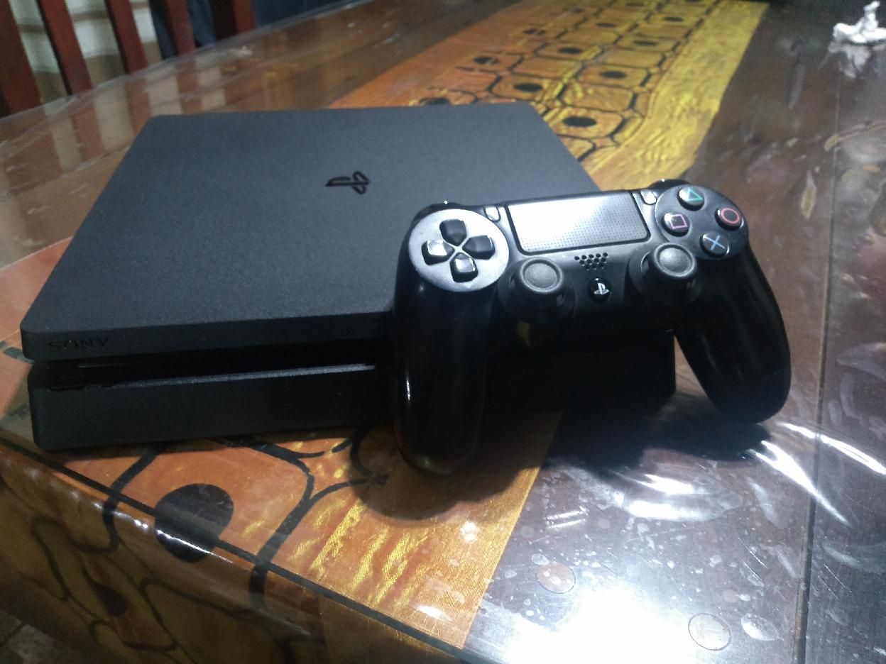 Ps4 slim de 500gb con un joystick + empaque original el joystick no posee cable para cargarlo pero se puede usar el cable de un celular