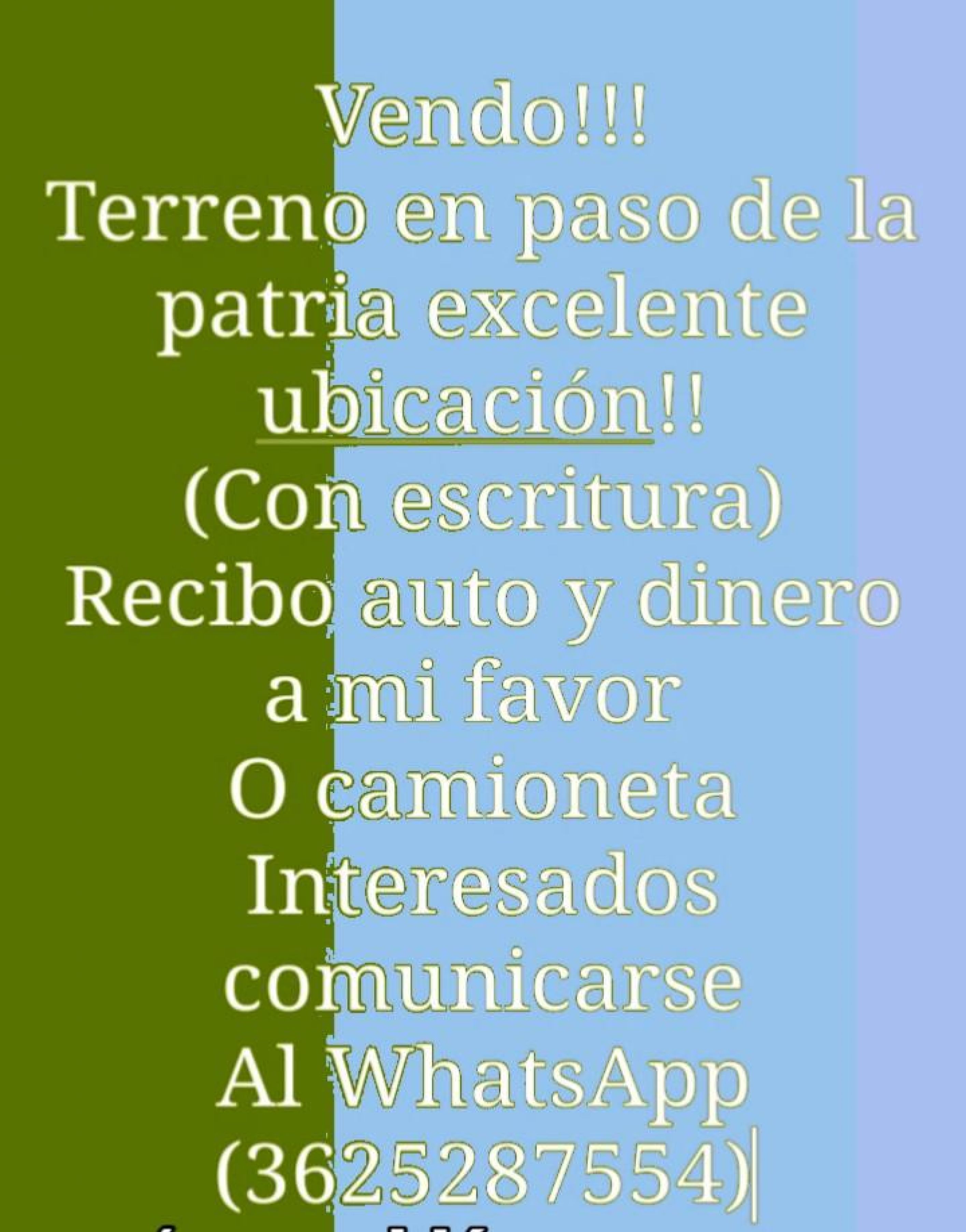 Gran oportunidad de construir tu casa de finde semana. Vendo terreno en paso de la patria muy buena ubicacion. A 3 cuadras de la playa pelicano .( con escritura) consultas al WhatsApp 3625287554