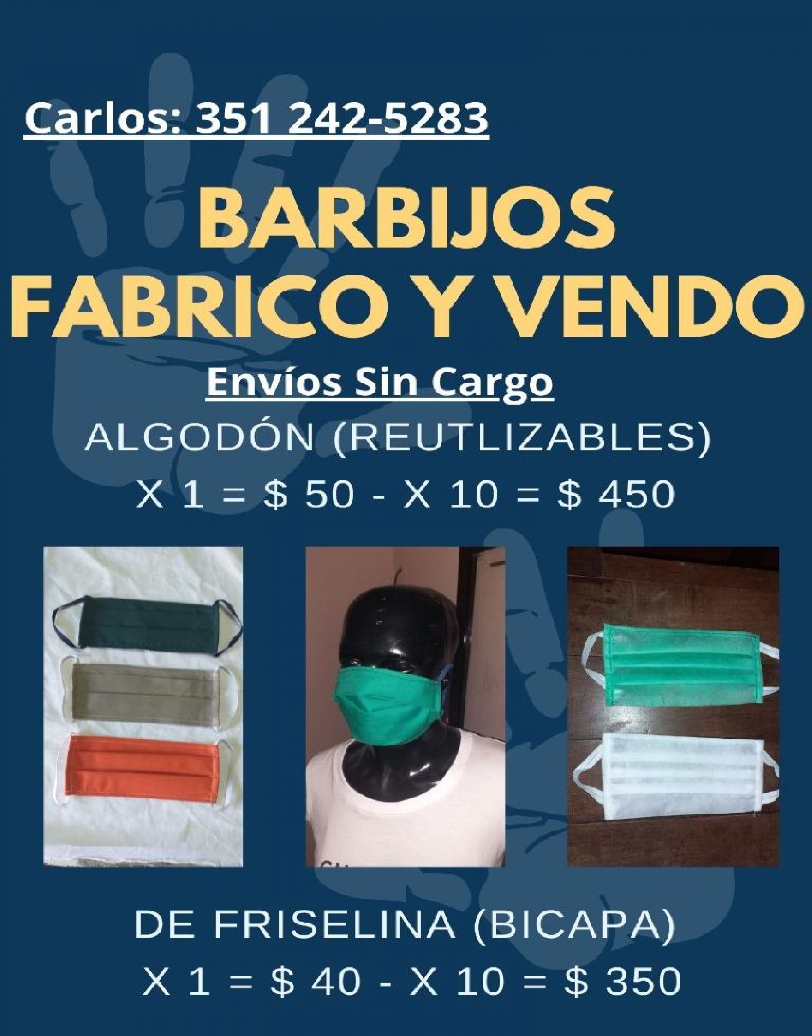 barbijos de tela lavable o friselina. Por diez. Envios a domicilio sin cargo