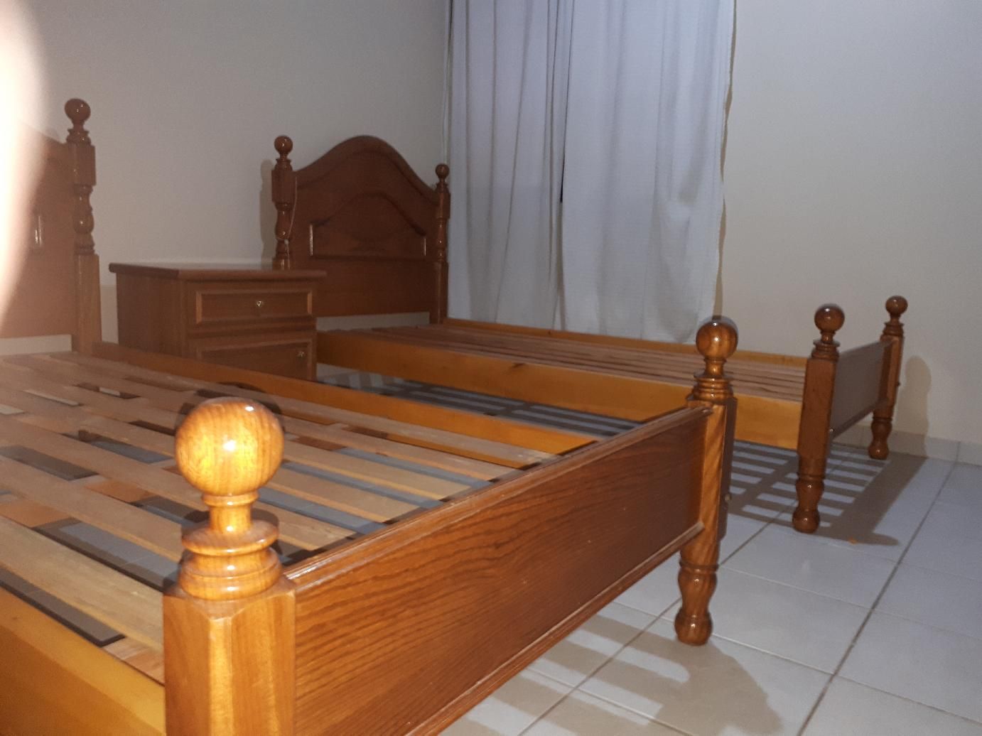 Juego de camas gemelas con mesa de luz completa en ROBLE de plaza y media como nuevas impecables